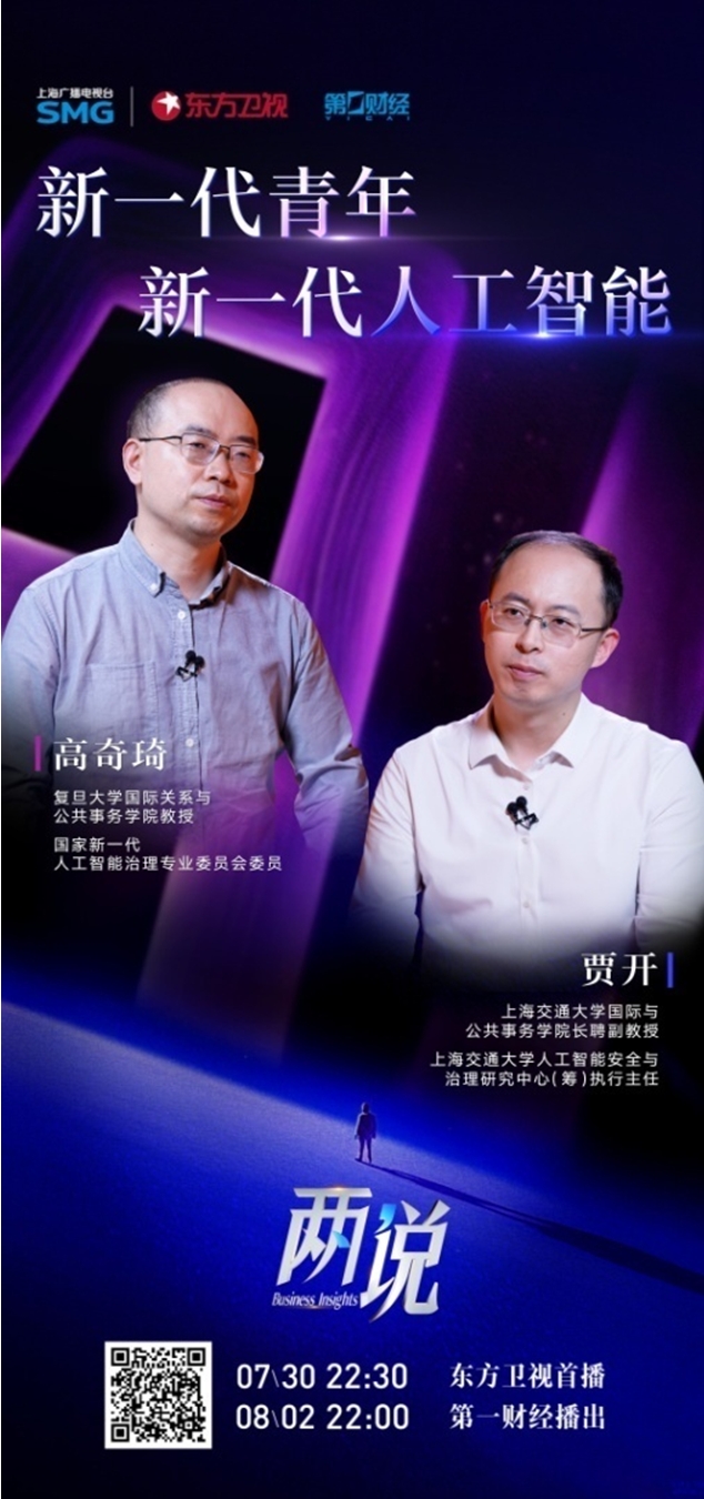 在此背景下,本集《两说》以“新一代青年与新一代人工智能”为主题,特邀复旦大学国际关系与公共事务学院教授高奇琦、上海交通大学国际与公共事务学院长聘副教授贾开展开跨界对话。他们将讨论青年一代如何认知和使用人工智能?教育体系又该如何调整帮助青年一代适应和引领这场技术变革?面向未来,人工智能会进一步压制青年一代的机会,还是帮助他们更好地释放潜力?